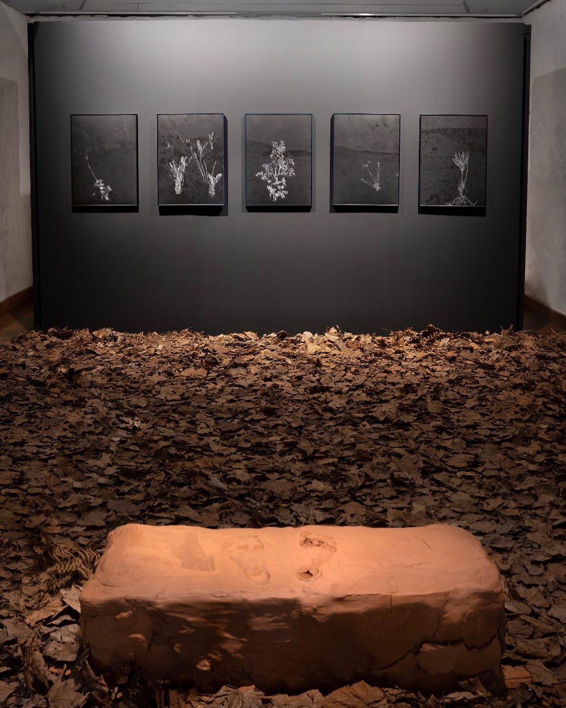 Dans ses installations et scénographies, le végétal réapparaît autrement : par le tressage, les vannes, les feuilles mortes, comme dans son exposition personnelle à Saint-Paul. Il ne s’agit plus seulement de représenter la plante, mais de l’introduire physiquement dans l’espace de création.
