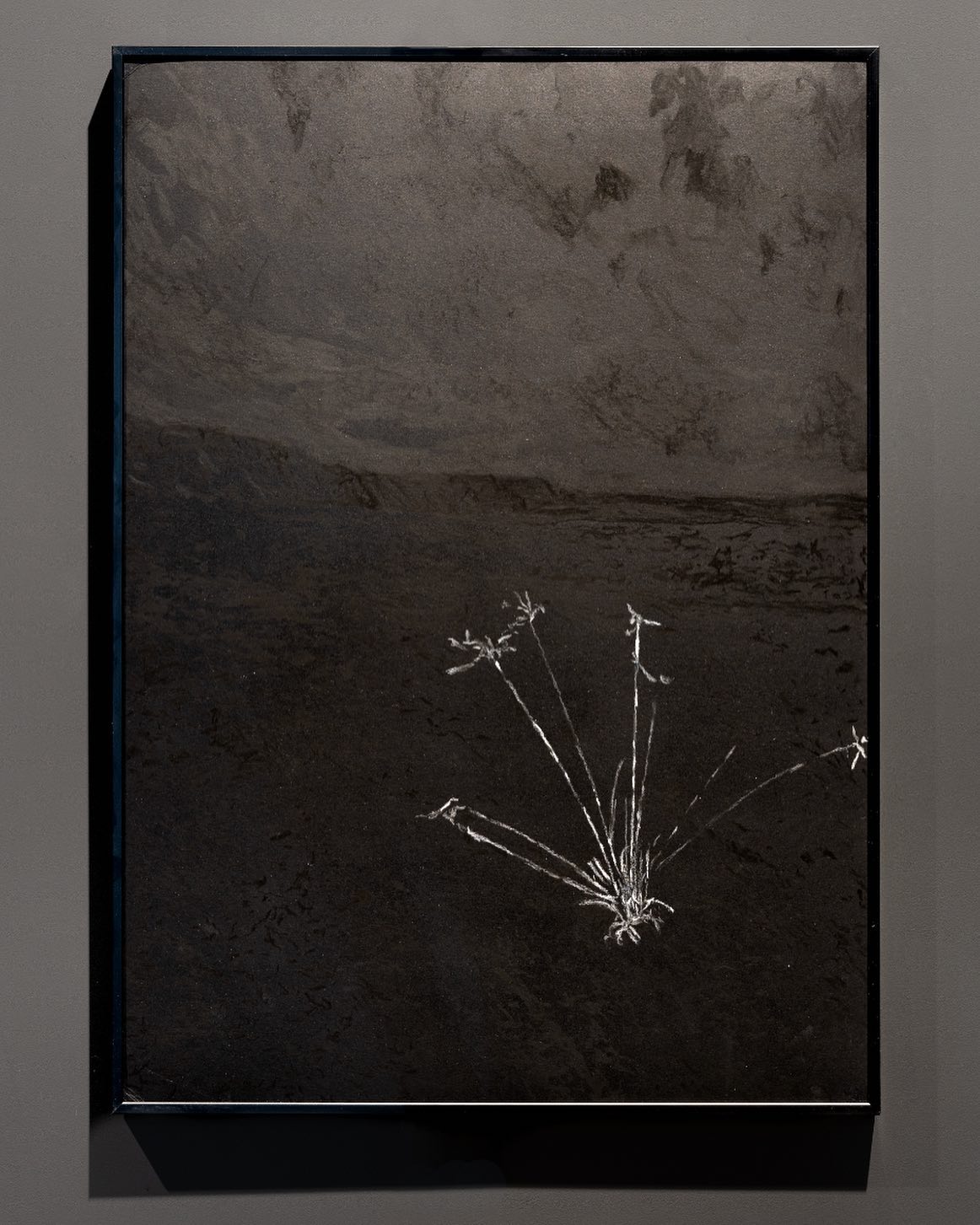 Avec la série Les Pionniers, Félix Duclassan explore les premières formes de vie végétale sur les coulées de lave. Le fusain, bois calciné devenu outil de dessin, fait alors du végétal une matière active, transformée en médium. Le geste artistique épouse ainsi l’histoire même des plantes qu’il évoque : naissance, brûlure, résistance.