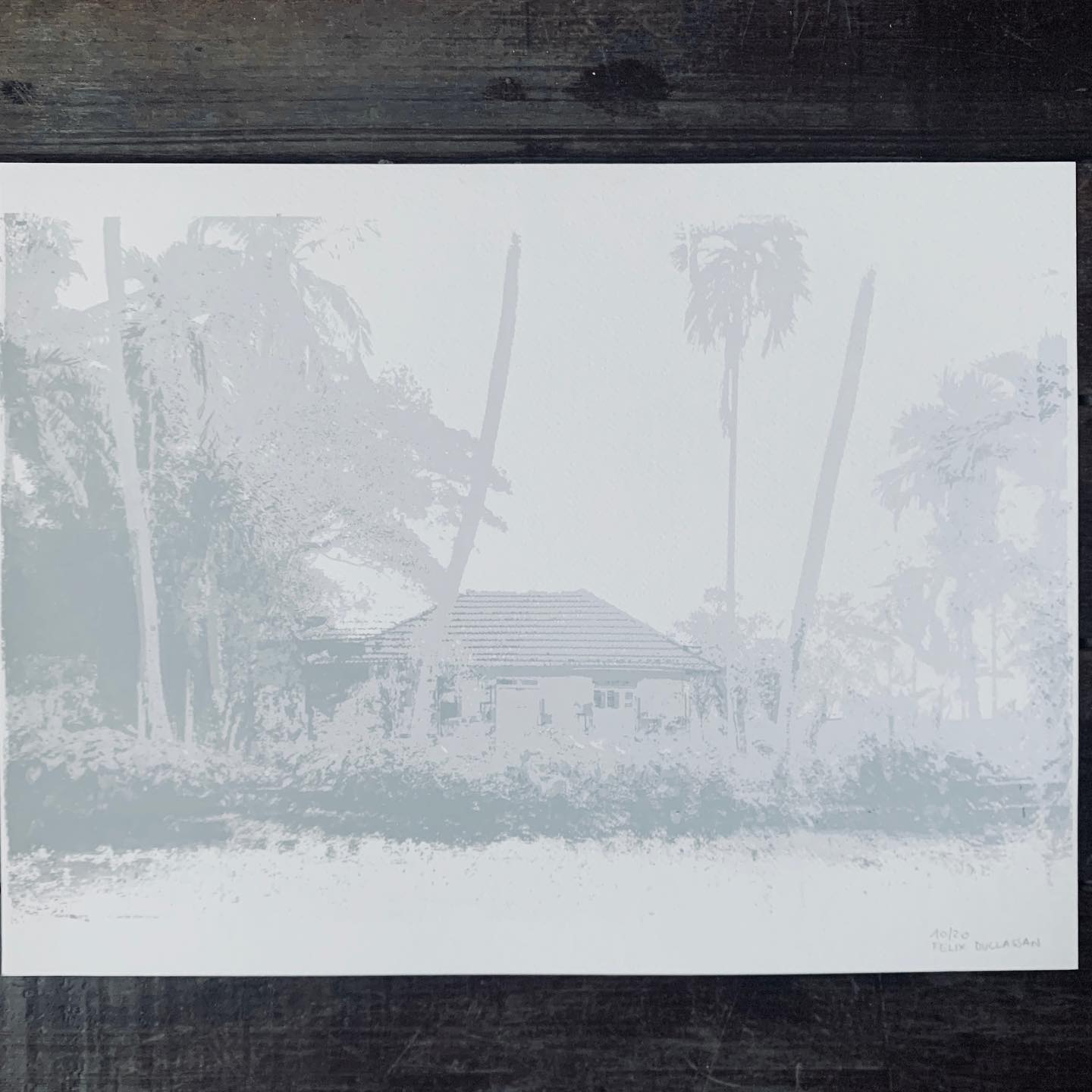 La figure du palmier cocotier traverse son œuvre comme un motif fondateur. Répété, décliné, détourné, il devient symbole de la tropicalité et de l’insularité, mais aussi point de connexion entre les territoires du Sud. À travers lui, Félix Duclassan évoque une géographie sensible, faite de correspondances entre îles, histoires et climats. Le palmier n’est pas décor : il structure l’image et relie les paysages de l’océan Indien dans une même respiration.