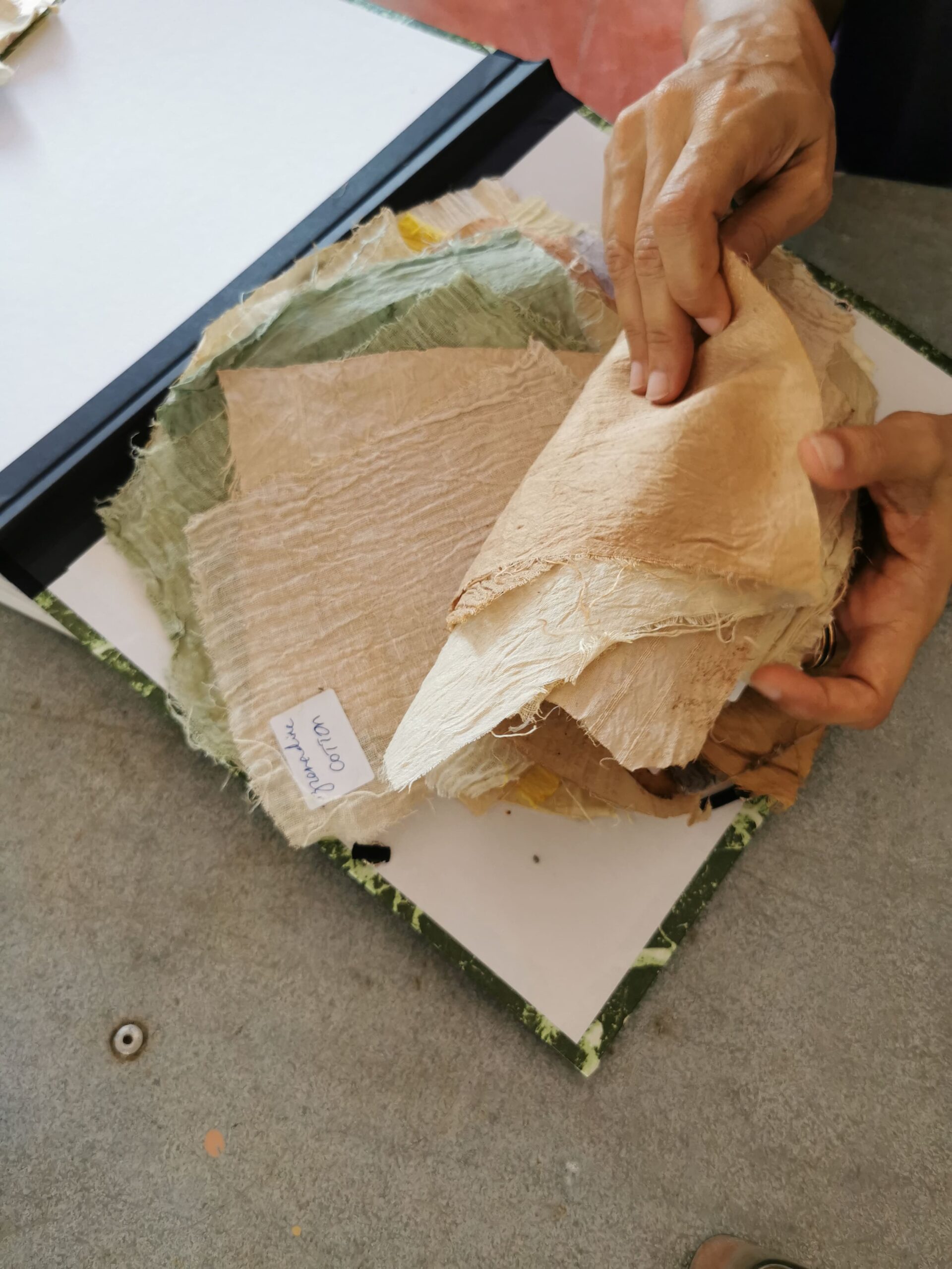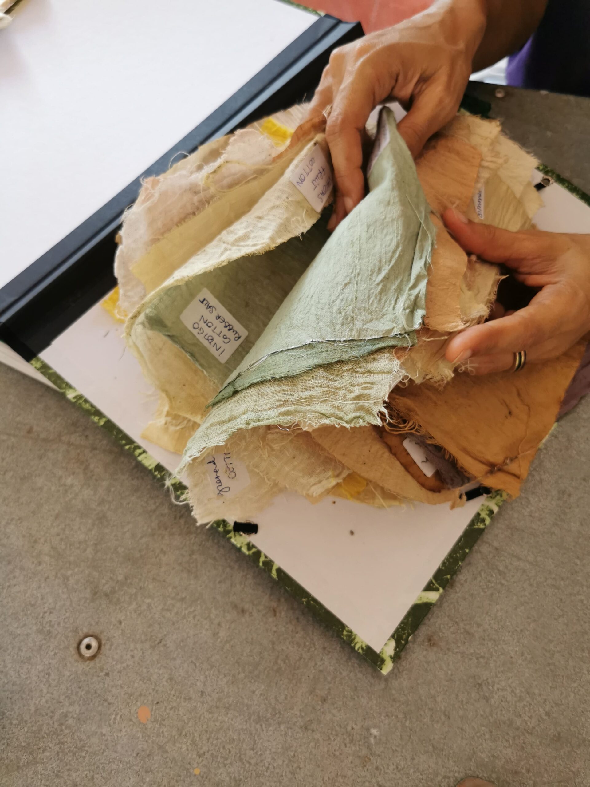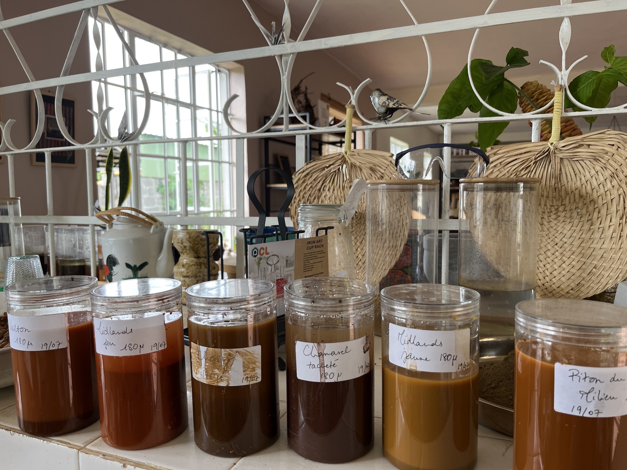Son travail avance au croisement de l’art et de la connaissance. Elle collabore avec des botanistes et des géologues pour mieux comprendre la composition des matières qu’elle transforme. Chaque pigment qu’elle met au point est le résultat d’observations, de tests et d’échanges, ancrés dans les paysages mauriciens.
