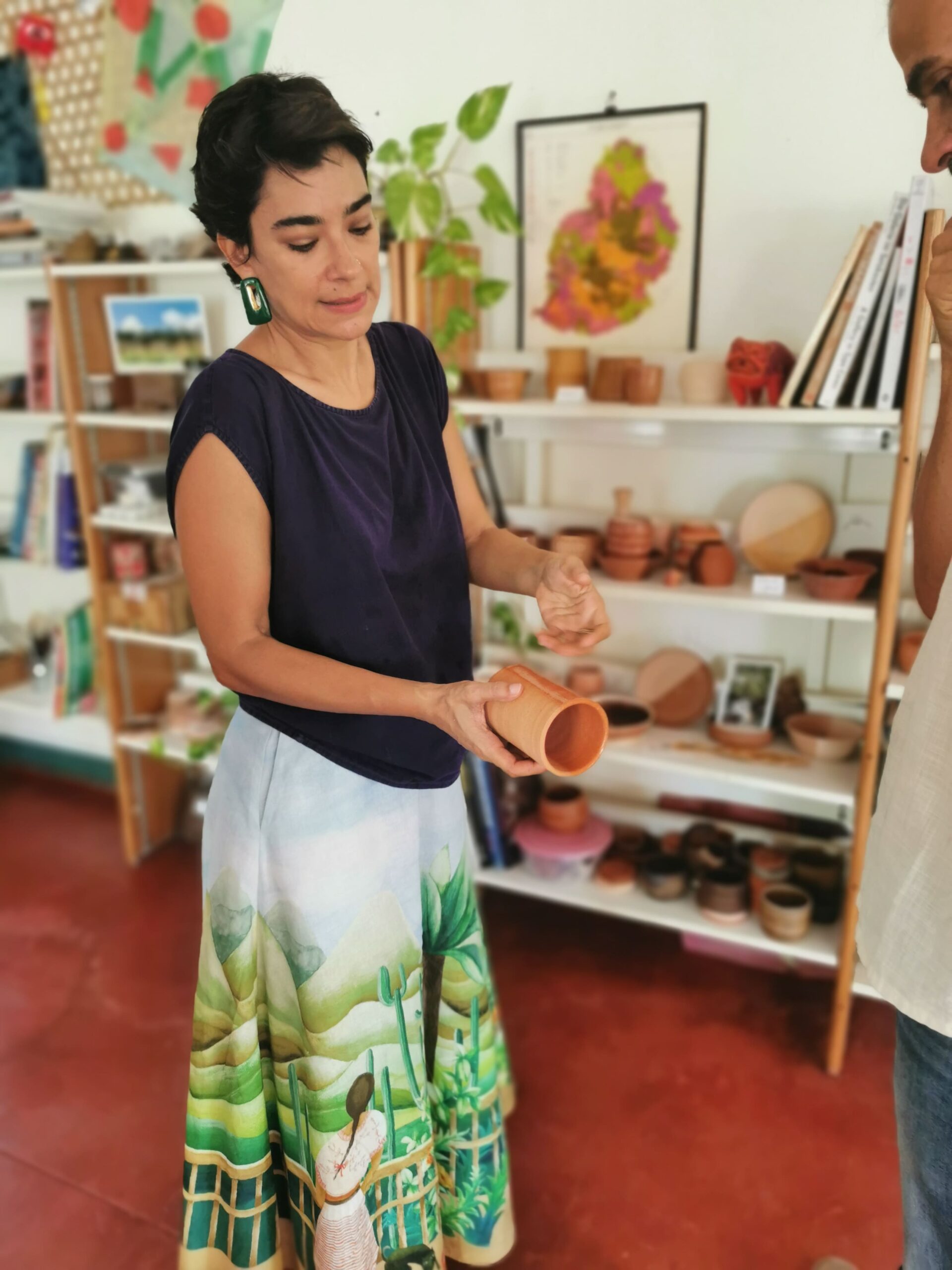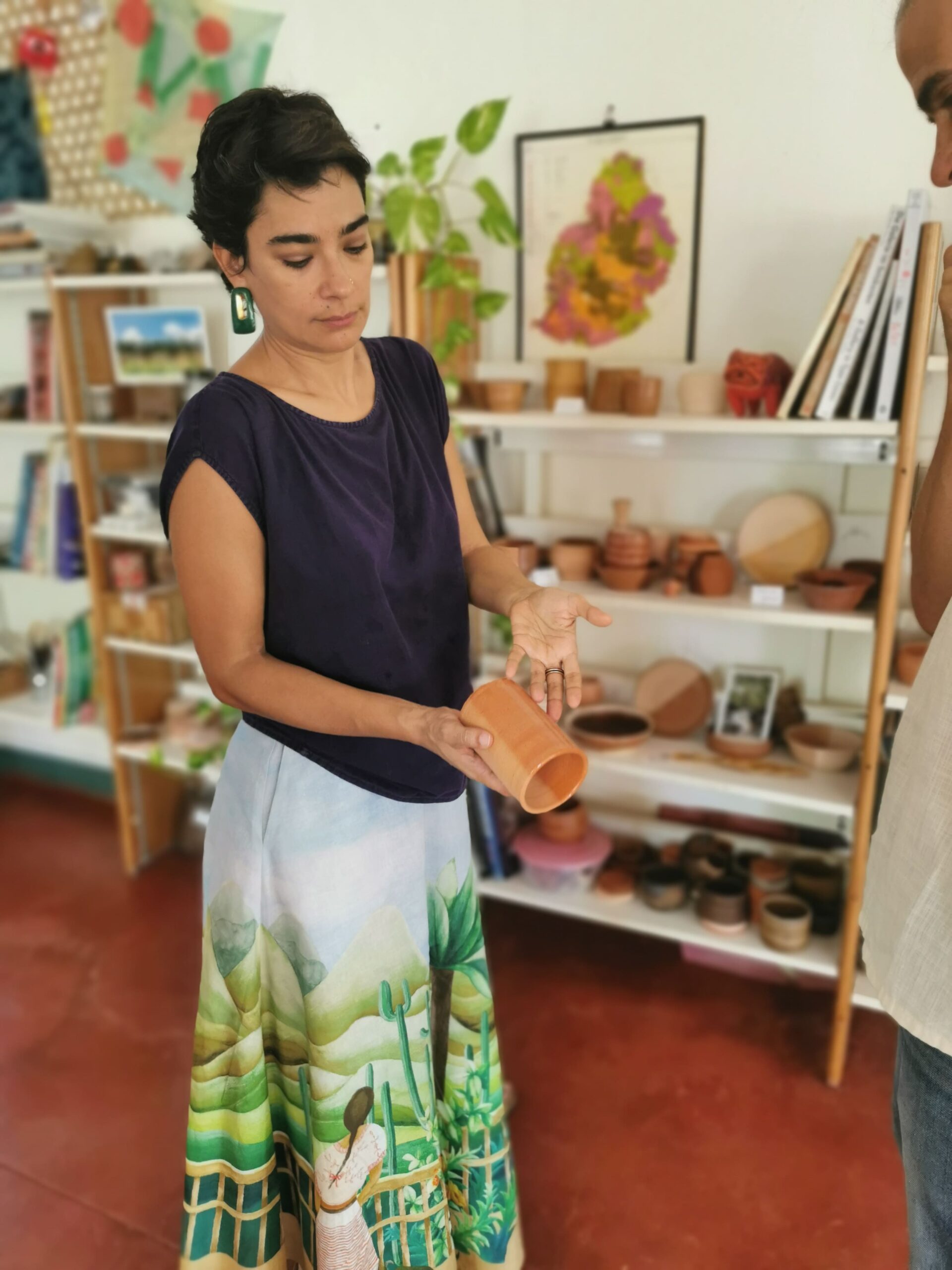 Céramiste et chercheuse de pigments, Shakti développe un travail de recherche autour des encres naturelles, des teintures végétales et des pigments issus du végétal comme du minéral. Écorces, fleurs, terre, sable ou roche deviennent ses outils de création. À partir de ces éléments, elle fabrique ses propres encres pour la gravure, l’aquarelle et certaines applications sur céramique.