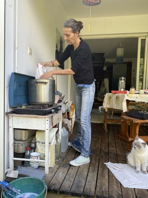 Aujourd’hui, elle s’apprête à ouvrir un nouvel atelier au cœur de Saint-Leu, un lieu où ses couleurs pourront enfin respirer plus largement. Elle rêve de machines qui prolongeraient sa main, d’espaces où transmettre son art, d’ateliers où enfants et adultes redécouvriraient leur lien instinctif au vivant.