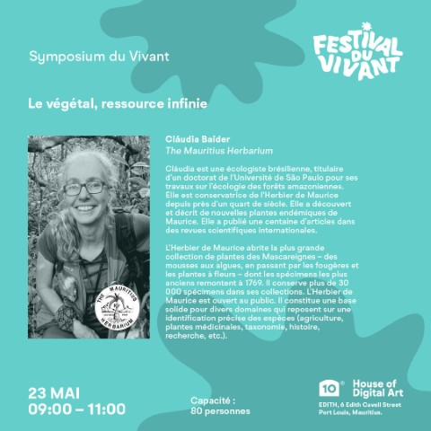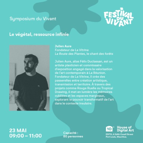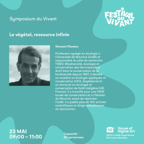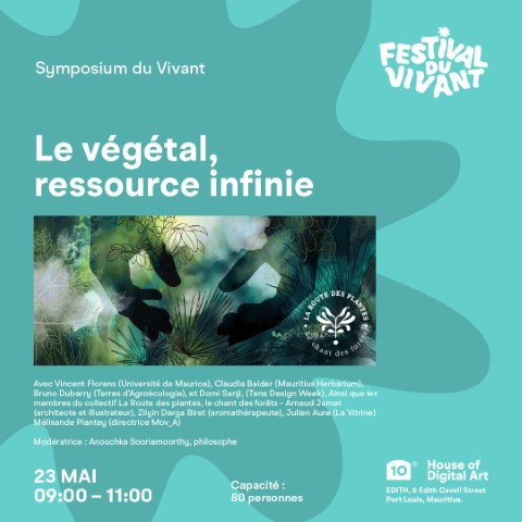 Le collectif de La route des plantes, le chant des forêts s’intègre à la programmation du Festival du Vivant du 23 au 24 mai 17h. A L’occasion de la Journée mondiale de la biodiversité, House of Digital Art, le Groupe Rogers et Odysseo, vous invitent au Festival du Vivant — un événement inédit à Maurice qui place la biodiversité au cœur de la création artistique et de l’engagement citoyen.