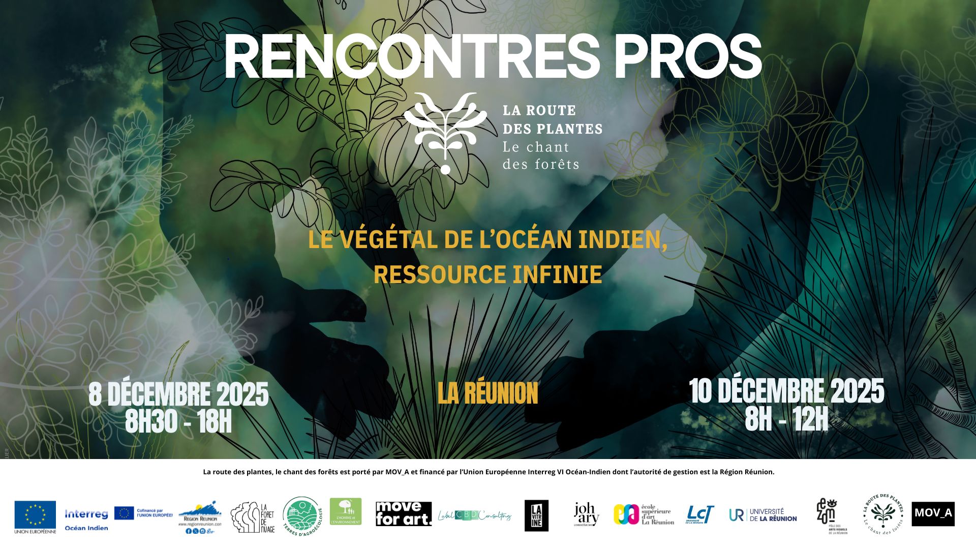 L’association MOV_A organise ses rencontres professionnelles et grand public « La Route des Plantes, le chant des forêts – Le végétal de l’océan Indien, ressource infinie », le 8 déc. au MOCA (Saint-Denis) et 10 déc. à l’École Supérieure d’Art de La Réunion (Le Port), dans le cadre du programme de coopération régionale soutenu par INTERREG VI – de l’Union européenne, avec la Région Réunion comme autorité de gestion.